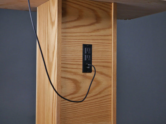 Every DJ booth comes standard with a fitted outlet on the DJ side for charging your phone, plugging in lights, or hooking up extra speakers.